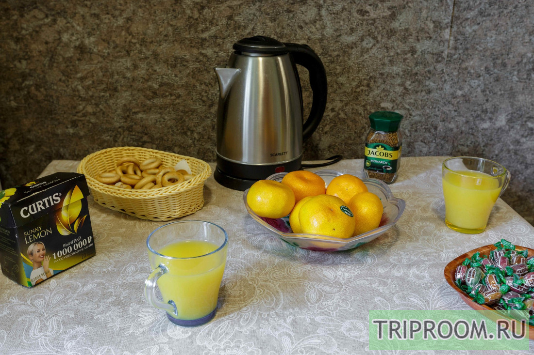 - полноценная кухня с обеденной зоной, оборудованная плитой, чайником, холодильником, СВЧ (микроволновая печь) и кухонными приборами ( тарелки, кружки, кастрюля, сковорода, столовые приборы)